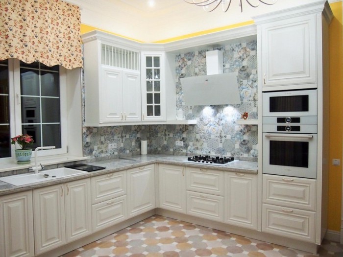 This style implies a soft and subdued light in the room and light curtains in the color of the kitchen set. Experiments with shapes and colors are perfectly combined and will bring all your fantasies to life if you are a creative person.