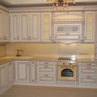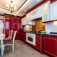 - Corner arrangement, when the furniture is placed angularly on two adjacent walls of the room. This is a classic installation of a kitchen unit, which frees up free space for the dining area or the installation of a bar counter.