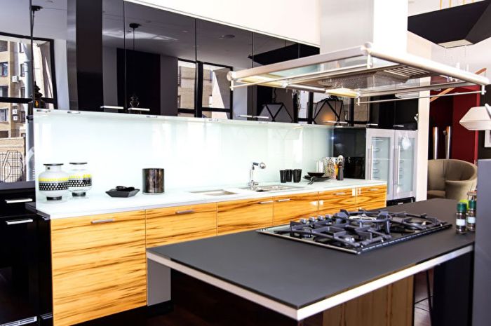 In this style, a lot of glass and glossy surfaces are used in the kitchen. Alternatively, place a round glass table in the dining area and exclude tablecloths and carpets.
