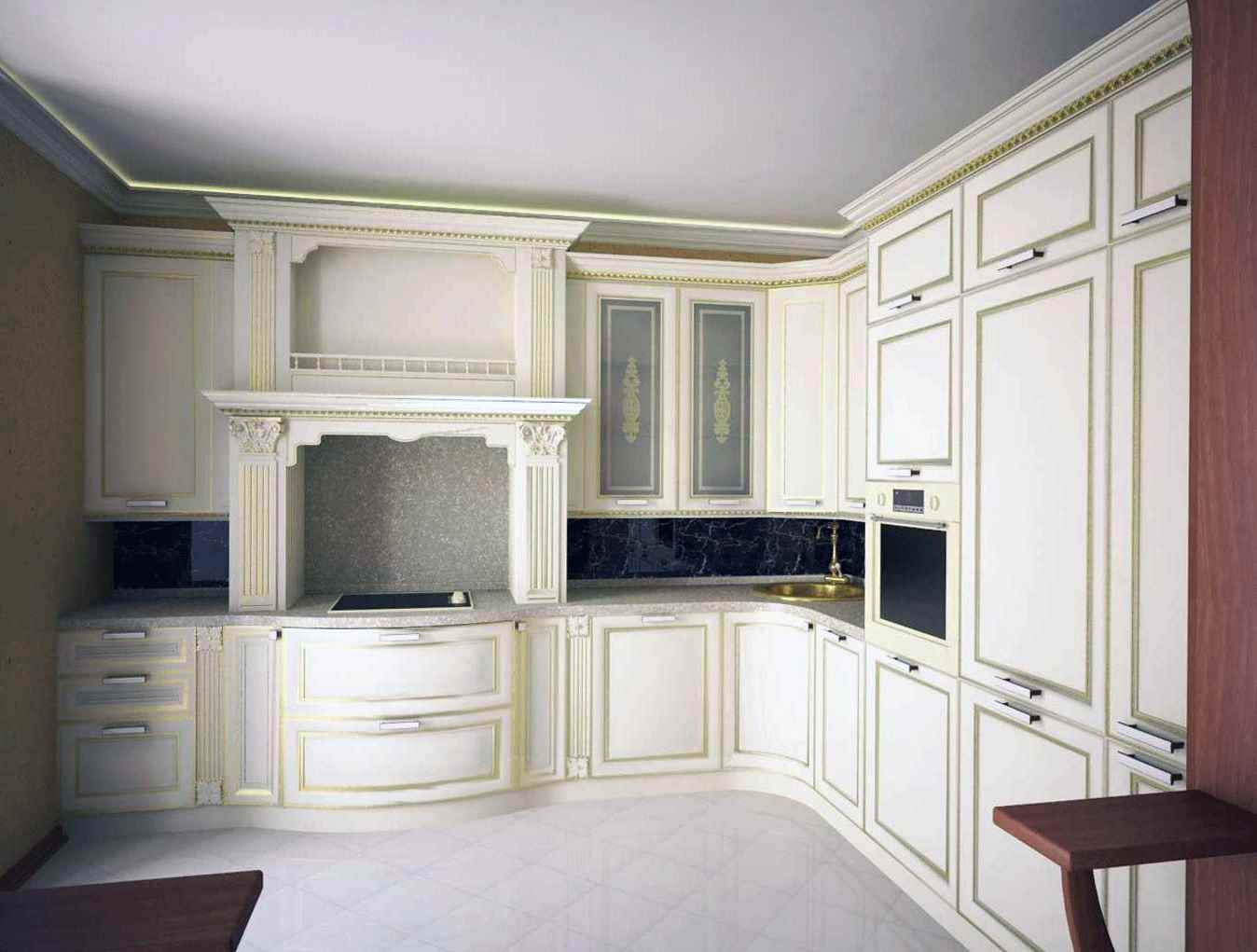 gypsum forms the basis of the ceiling of a classic kitchen; stucco molding is made of it;