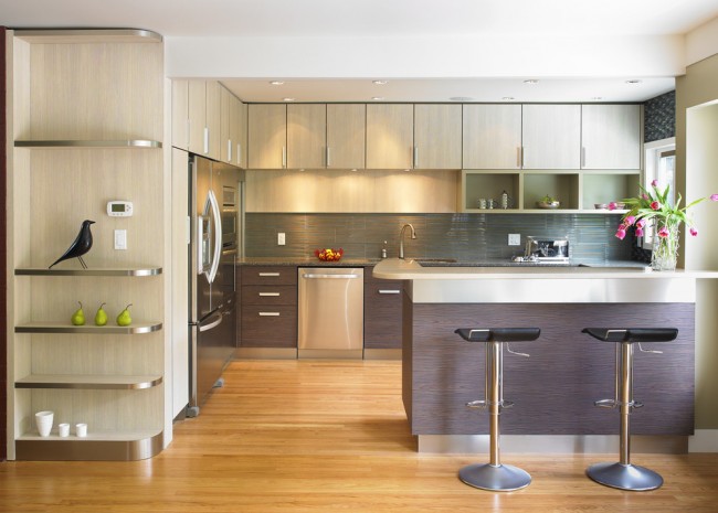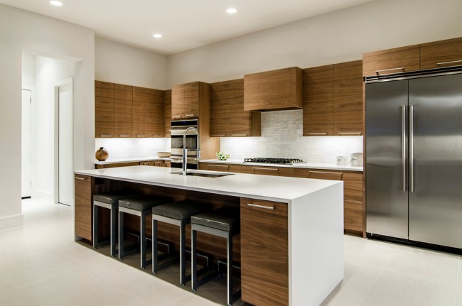 Modern the kitchendecorated in modern styleare a great solution for lovers of innovation, combined with classic restraint. It is suitable for rooms of any size, combining multifunctionality, convenience and a large amount of free space. This is facilitated by a concise furniture, a minimum of massive elements, replacing the overall dining table with a bar counter.