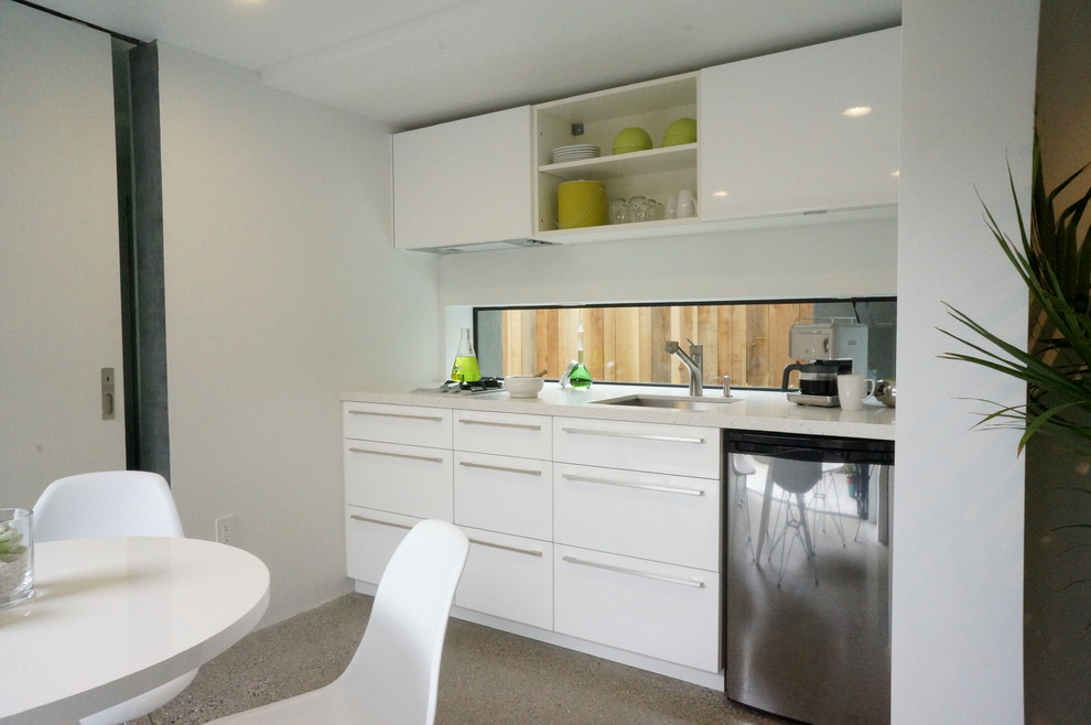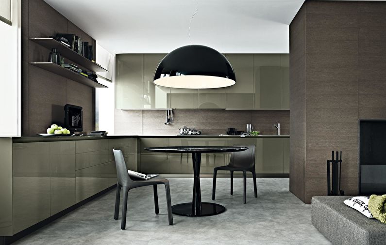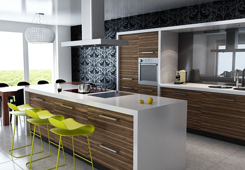 Modern in the kitchen the interior - An ideal solution for lovers of restraint, conciseness and relevant ideas. It harmoniously combines romantic classicism, strict and restrained minimalism, multi-functional high-tech.
