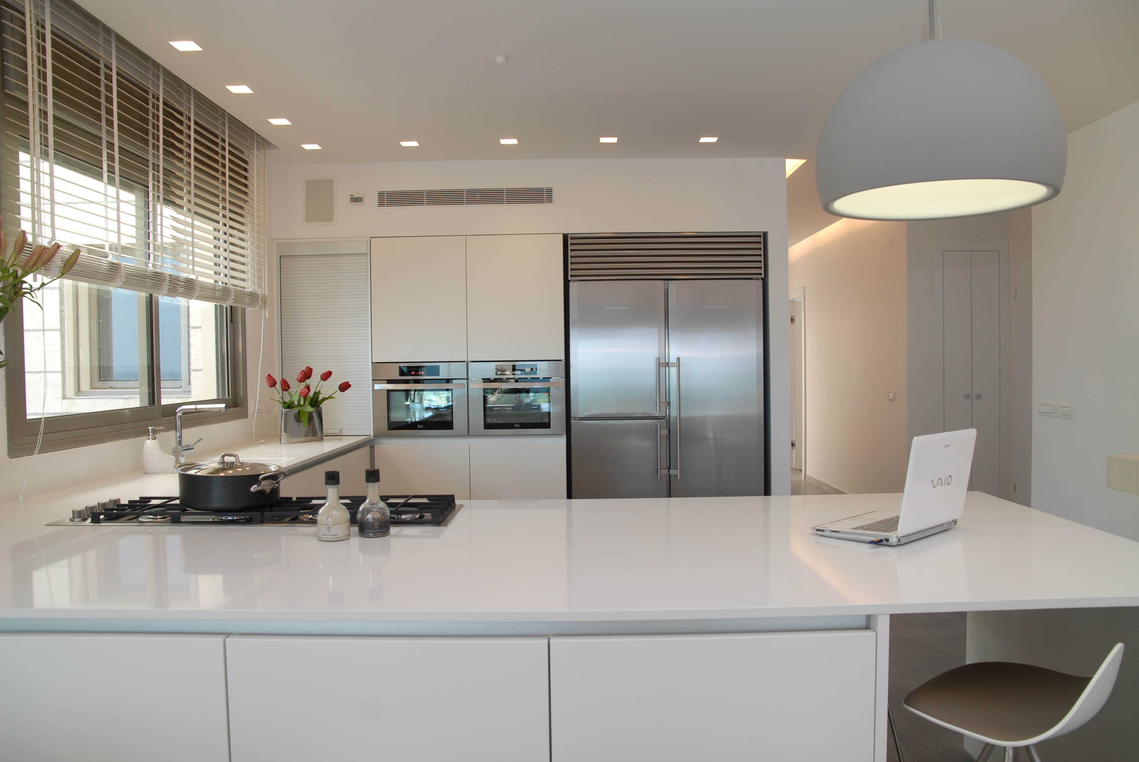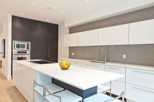 Photos of such projects are simply mesmerized by the purity of lines, where a white and shiny surface and light shades prevail.