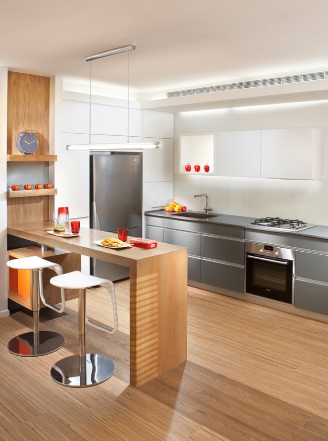 Wooden elements always look fresh and modern, and can also complement the interior in any style.