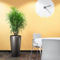 3. If high-tech is visible in the design, the plants must certainly be unusual, and presented in such a way that guests have the opportunity to feel it. The most interesting solution is lithops, surrounded by colorful pebbles, placed in an aquarium of intricate shape.