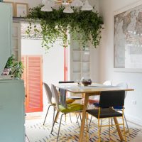 Hanging flowers fit harmoniously into the kitchen interior and occupy a minimum of space