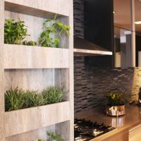Nowadays, more and more various indoor plants are used to emphasize the design style of the kitchen. Some have even become an integral part of a particular style or idea.