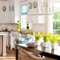 Of course, the windowsill is not the only place within the kitchen where flower pots are placed. For example, they are often hung from the ceiling, if they are climbing plants, adapted on wall shelves, refrigerators, or even put on the floor. But there are places where colors cannot be found, and the point is not that it spoils the design: