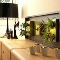 1. For modern design solutions, including the presence of straightness, it is worth choosing the appropriate plants. In this case, there is a use such as bamboo, dracaena, and especially sansevieria.