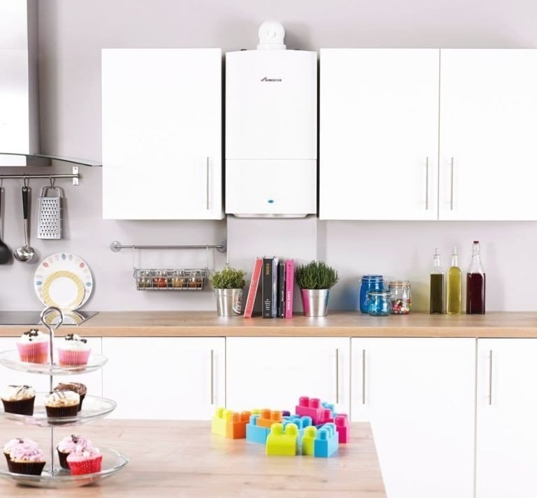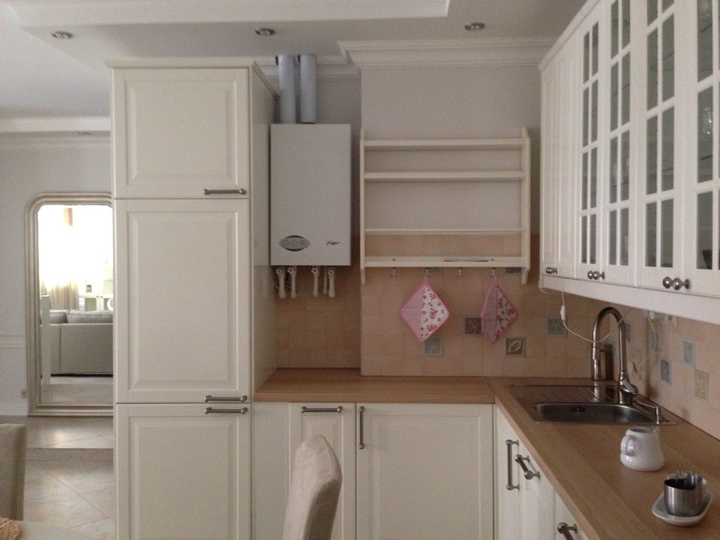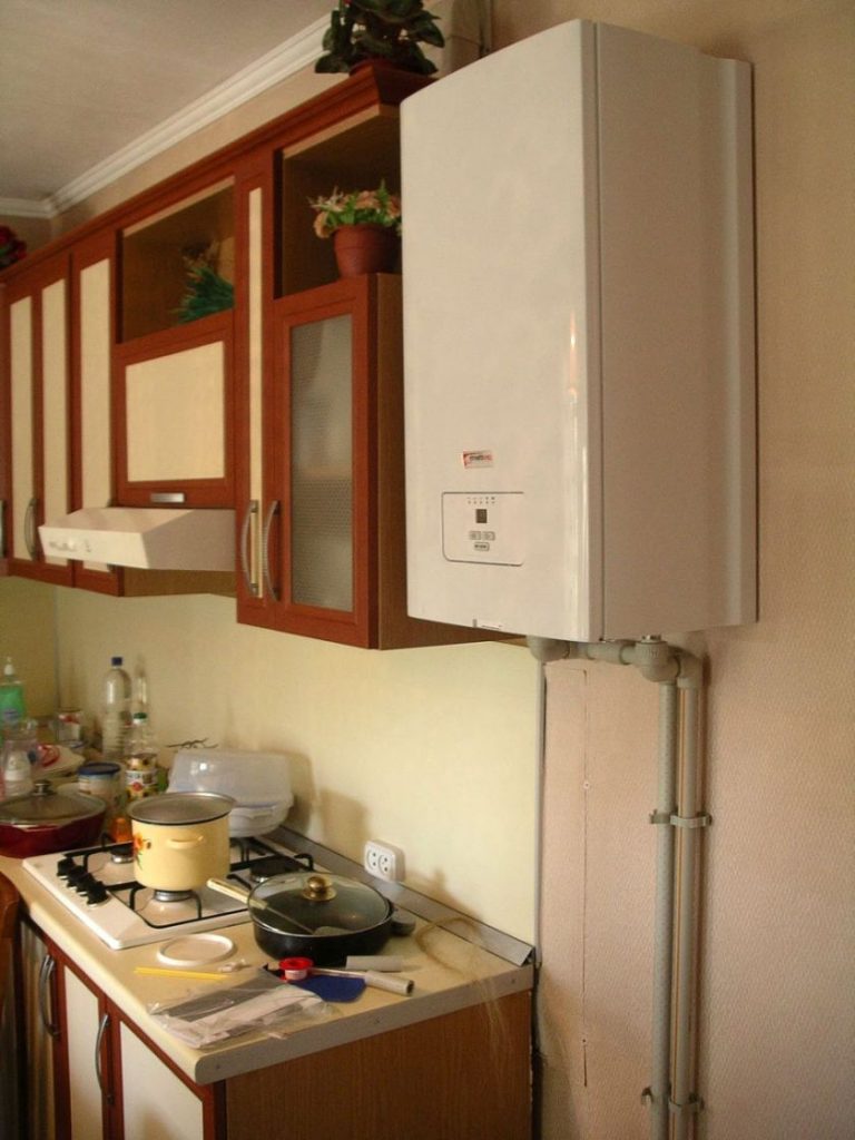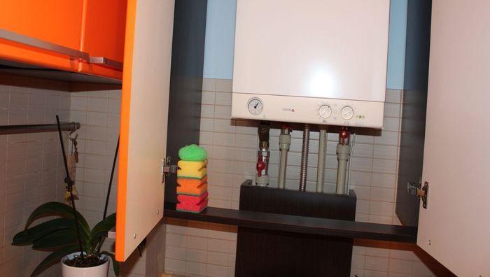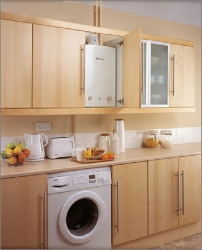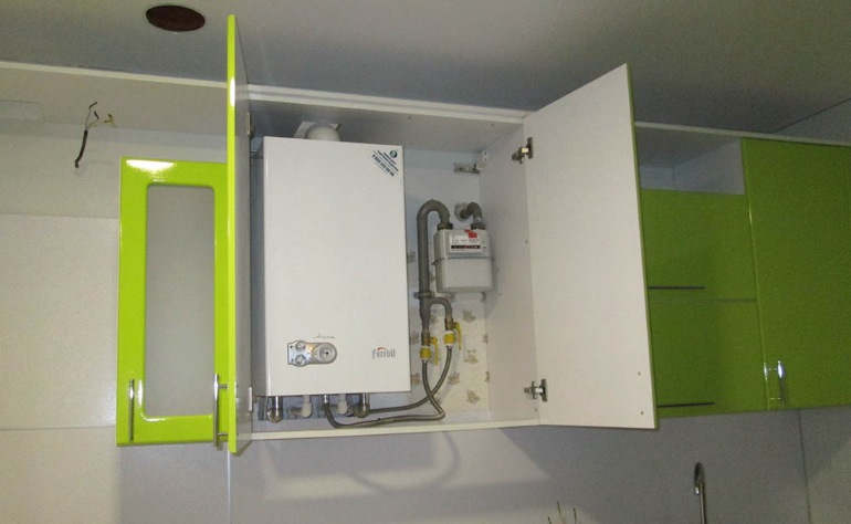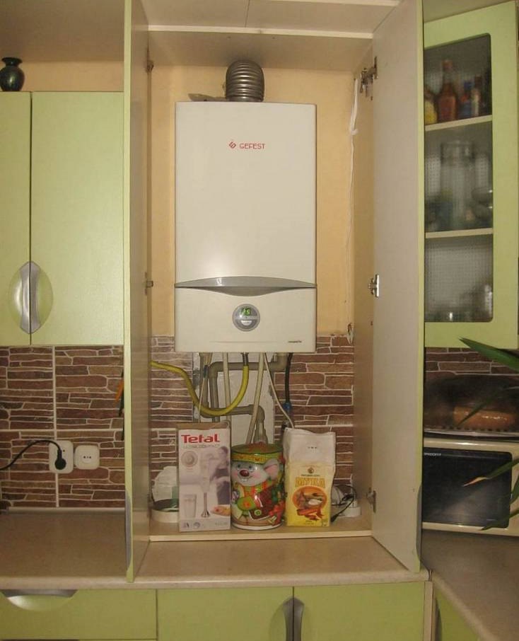 Boiler inside the kitchen cabinet