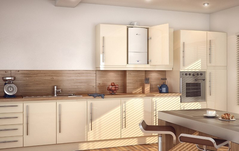 Although most gas boilers have a similar appearance, some features may emphasize the style of the kitchen interior.