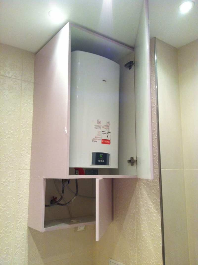 That is, a camouflage cabinet will look like a furniture frame with doors. In such designs, the column will be well ventilated, without overheating. The disadvantage of such a solution is that the method is completely unsuitable for small kitchens - the module takes up too much space if implemented in accordance with all the rules of safe operation.