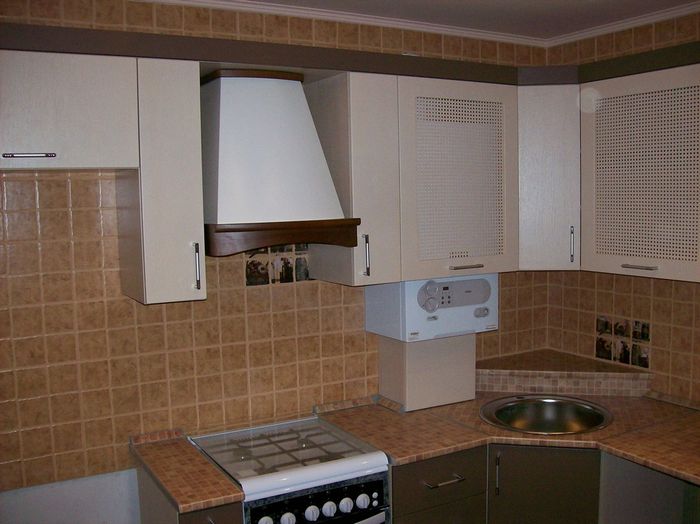 Gas boiler in the corner cabinet