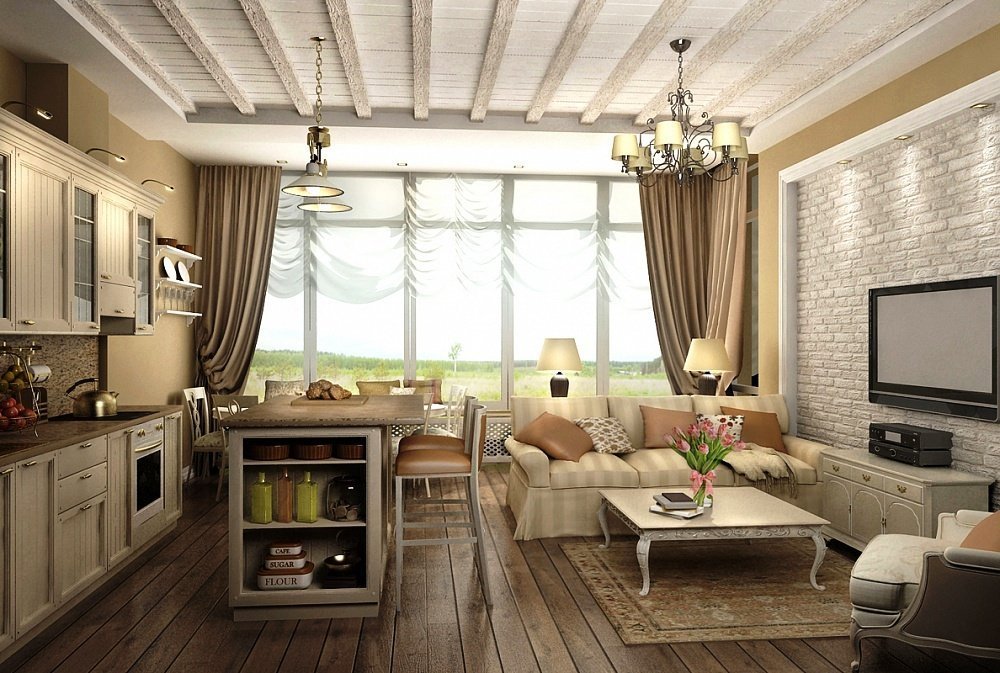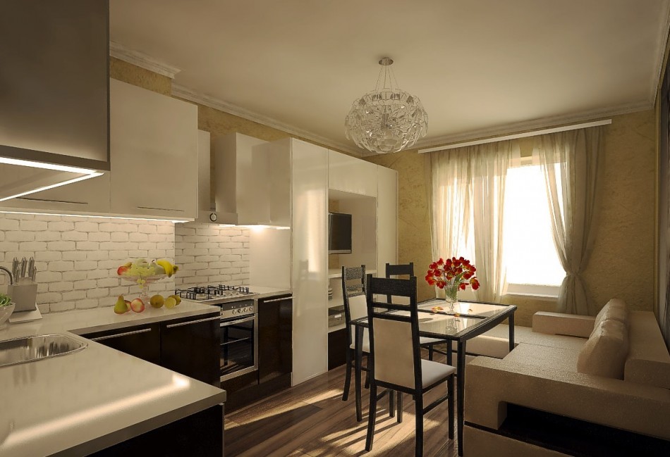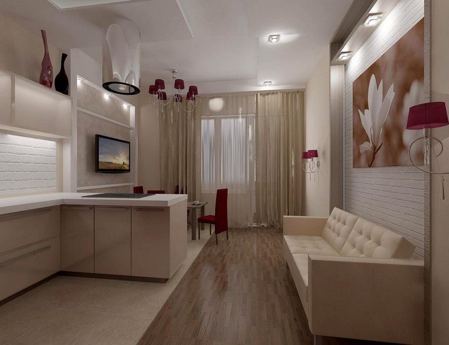 Design is of utmost importance. Properly thought-out decoration allows you to hide the imperfections of the room and focus on its advantages. If the kitchen and living room are combined in one room, you should carefully consider the design. It is important to visually distinguish and designate each zone, but to observe the general style of space.