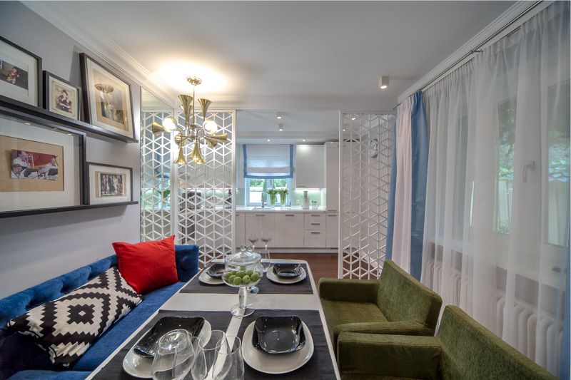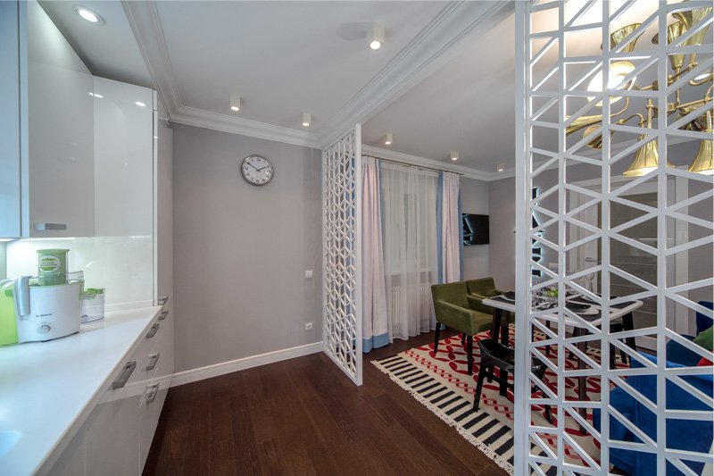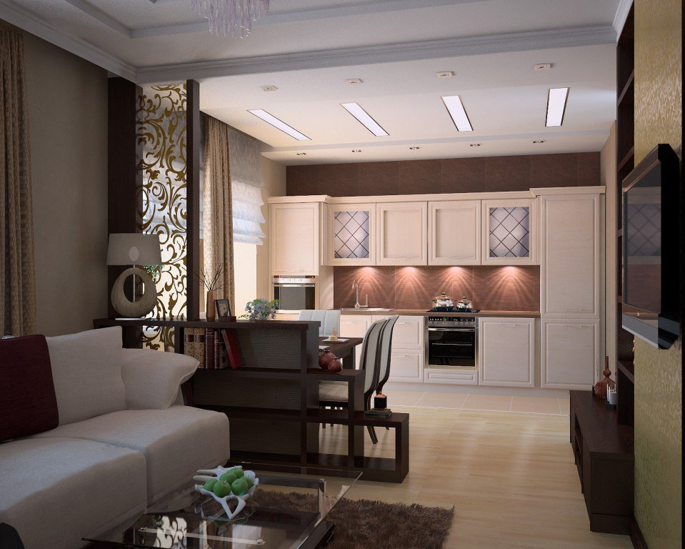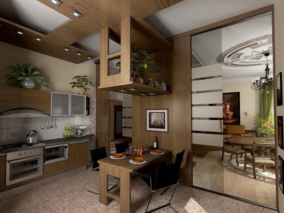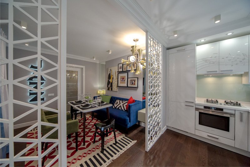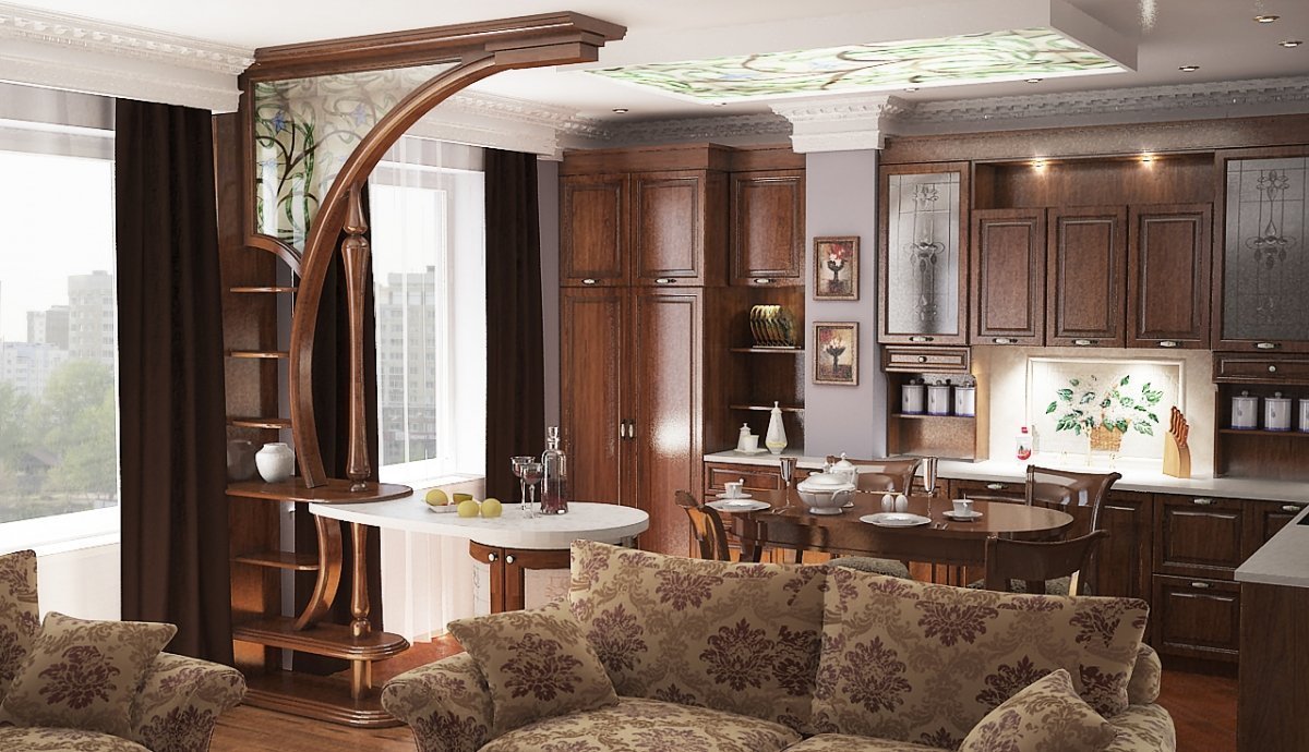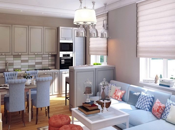 At the stage of project development, it is necessary to consider how the kitchen area will be separated from the living room