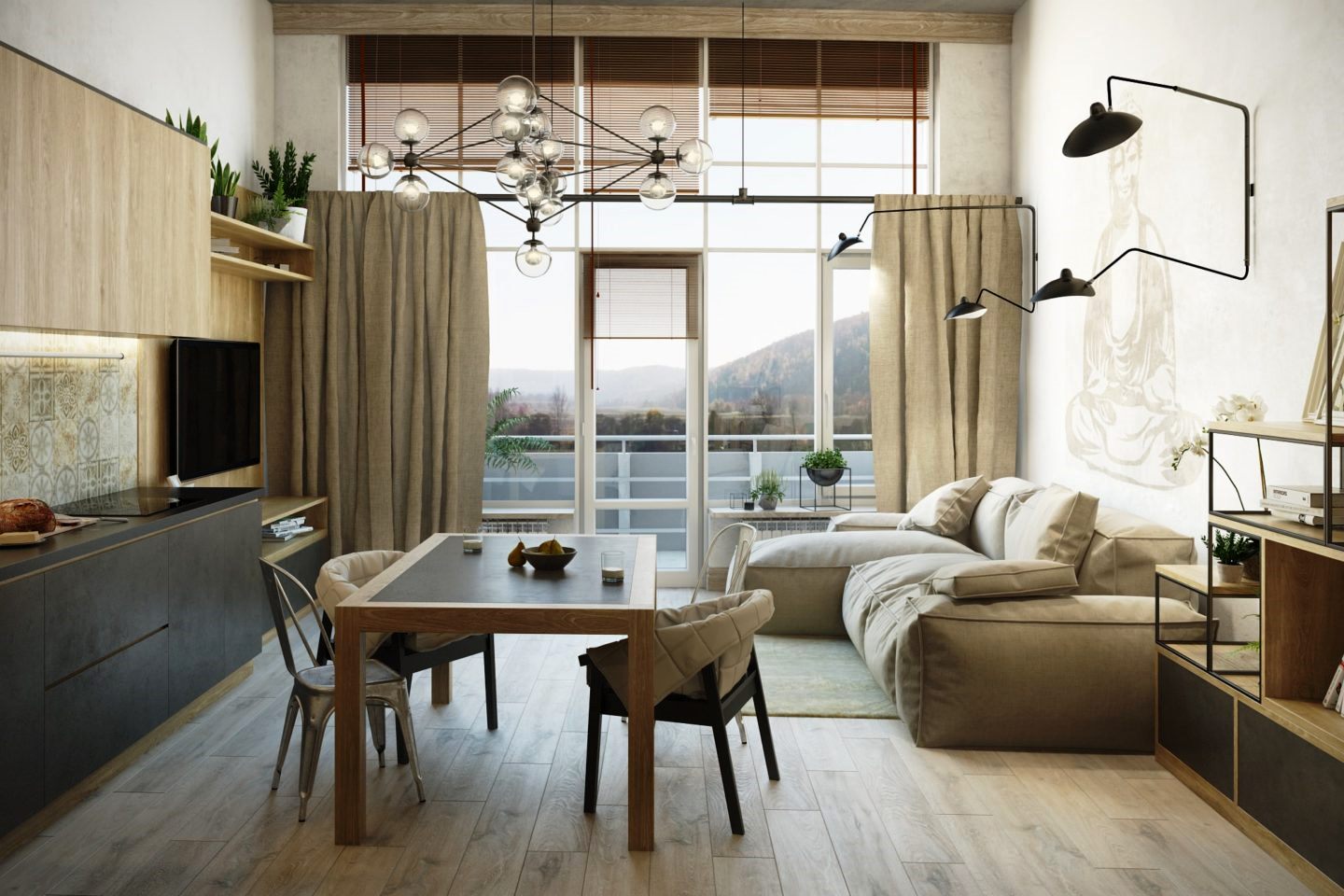 Window decoration plays an important role in creating the design of the kitchen-living room