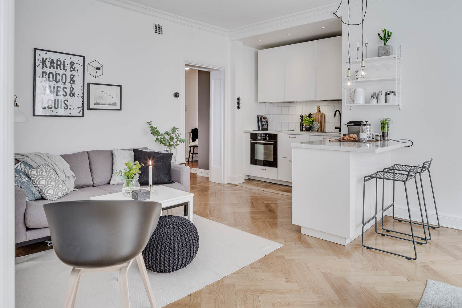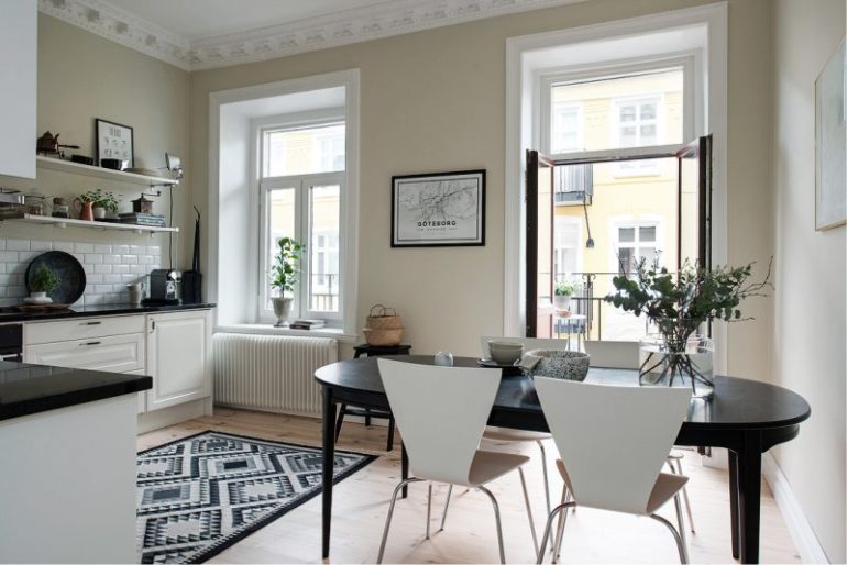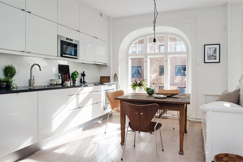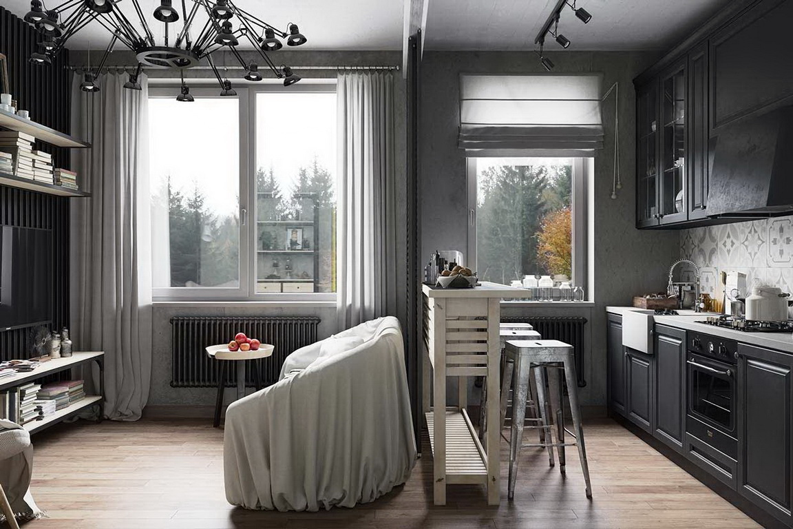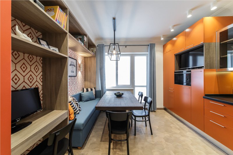 Furnishing a kitchen-living room requires knowledge of certain design tricks