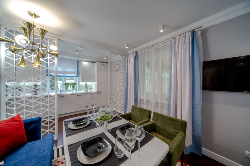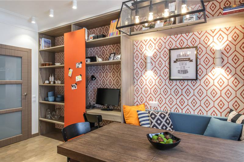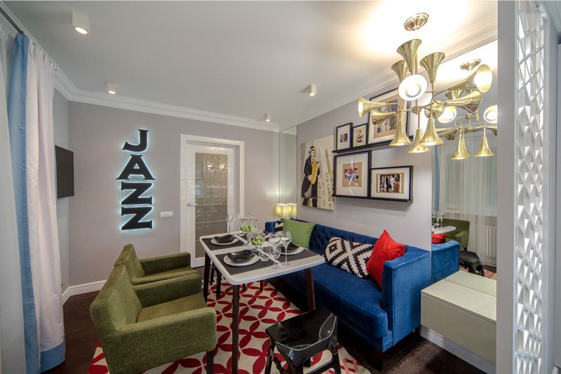 To create a comfortable room, where several rooms with different functional purposes will be combined, it requires maximum effort. In addition to personal taste preferences, you need to consider the features of space, the pros and cons. You can use color contrast to indicate zones.