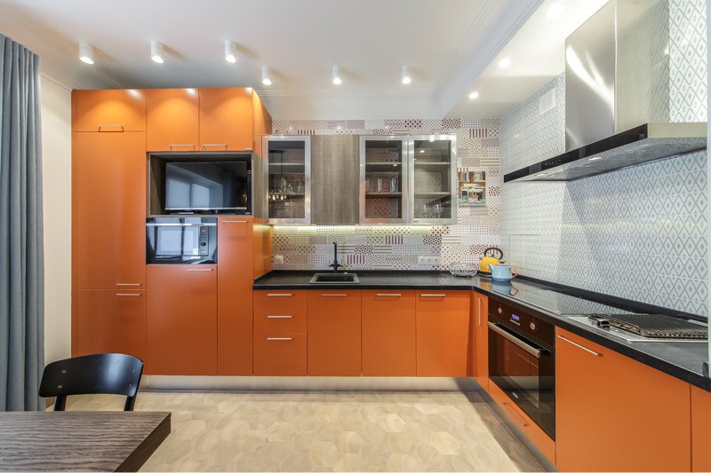 | L-shaped | The most common layout. Allows you to use the corner, which increases the useful use of available space. |