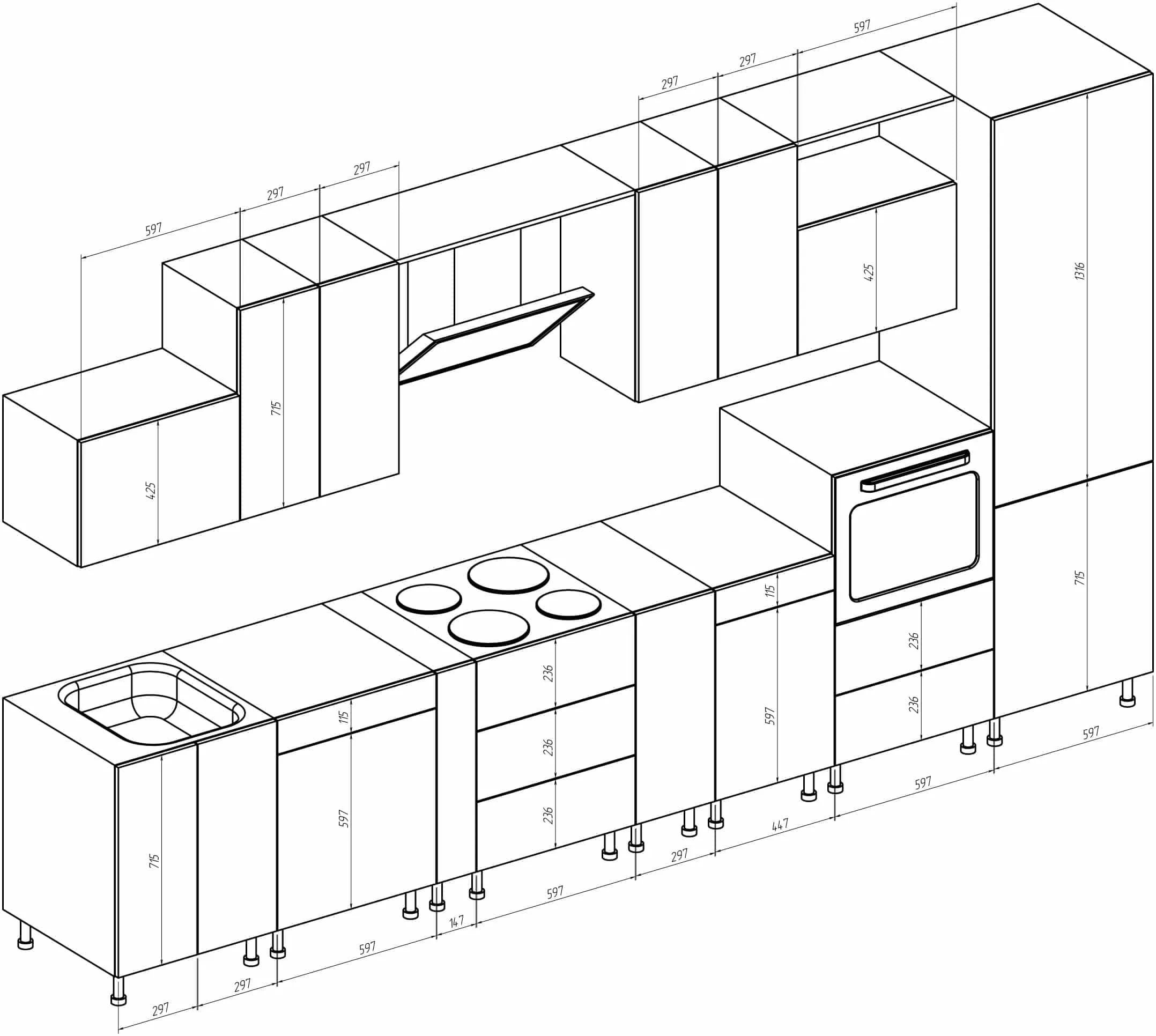 Important. Measurements should be made at three points: floor, wall, ceiling. Incorrect room geometry can affect the inconsistencies of hanging cabinets or other elements. Also, be sure to consider the location of the main networks of the apartment or private house. This applies to electricity, plumbing and sewage. Do not forget about the exhaust system.