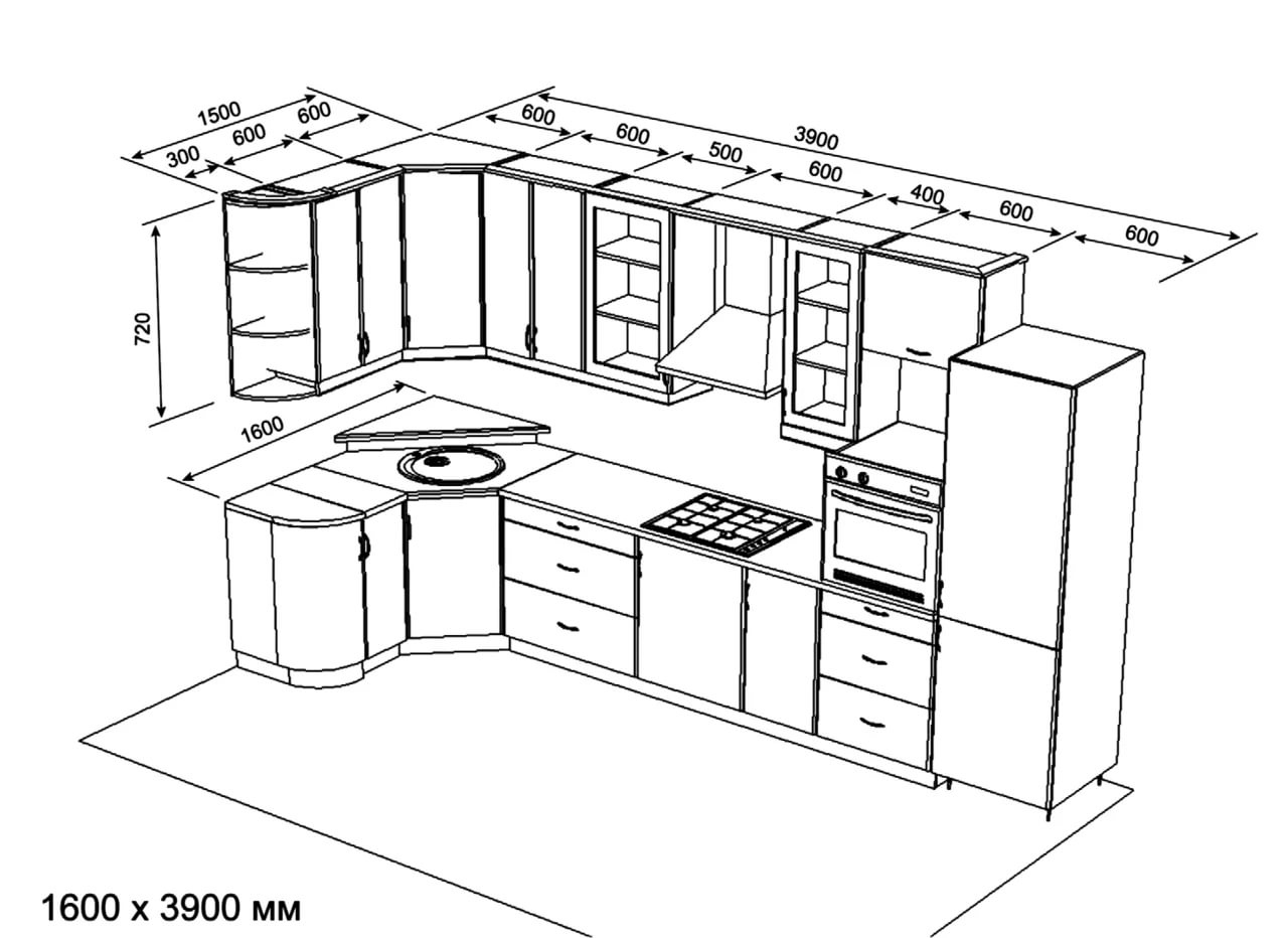 In order to equip a modern kitchen with your own hands, you need to correctly measure the room. This is done in the following order.