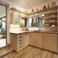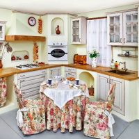 When the kitchen is made of chipboard or MDF, the style of the interior is set earlier by the selected color and shade of the material. It is important to show due zeal and competently combine the existing apartment design.