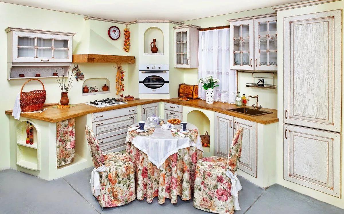 All these components will give the kitchen space sophistication, sophistication and extraordinary charm. The main thing is to choose their design correctly, to furnish the room in accordance with all the rules and standards. First of all, the layout depends on the quadrature. The working space for cooking must meet ergonomics, functionality, ease of use. After these parameters, style and design already follow.