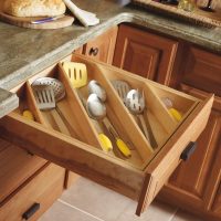 After installing the countertops, they proceed to the manufacture and installation of wall cabinets. They are made in sufficient quantities to ensure the capacity of all household utensils and convenient use. Doors are made and hung last, as they will have to be customized.