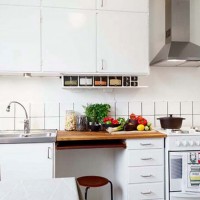 In the kitchen, household appliances, a table, a closet, a pencil case, other furniture, curtains and kiseya are correctly placed. If the kitchen is small, then the task of placement is complicated.To facilitate this task, retractable kitchen baskets have been developed to save space. There is such a piece of furniture as a pencil case. This is a tall cupboard that allows you to conveniently lay out all kitchen items and utensils. At the same time, the pencil case has a very simple design, which allows you to make it your own hands suitable for the kitchen in a small-sized apartment. Examples and different ideas can be seen in the photo on the net.