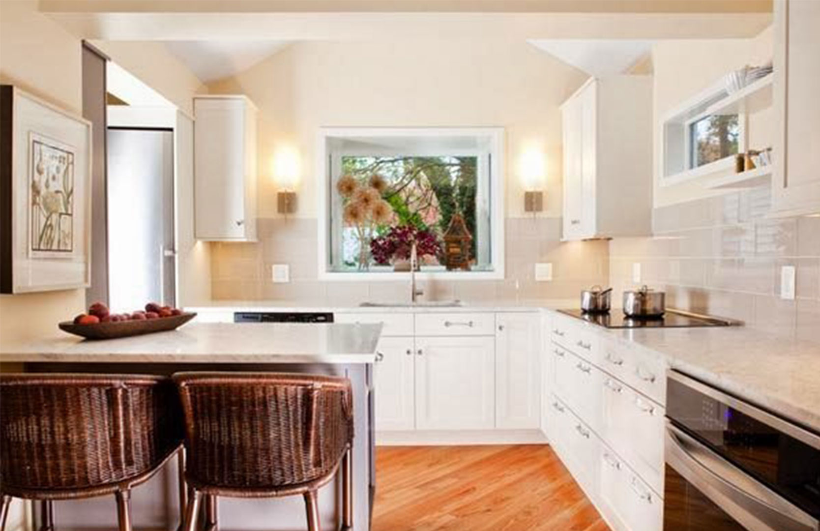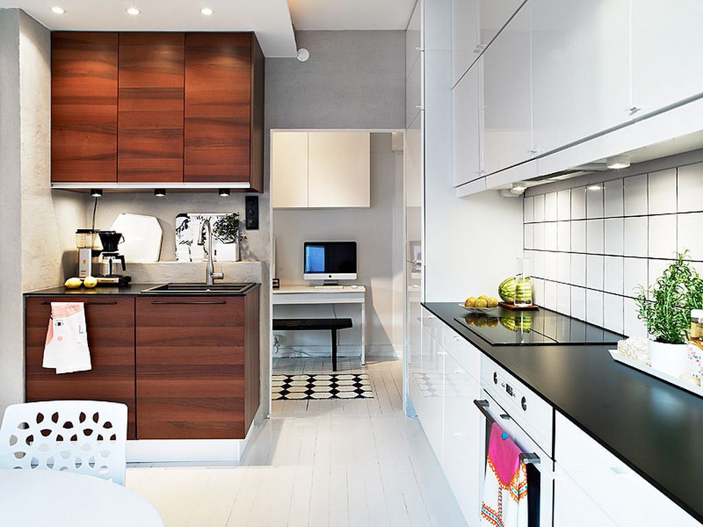 Any room, including kitchens, is divided into work areas. This can be seen in numerous photos on the network. When developing the interior of the living room, the room is often used as an office or dining room, respectively, it is divided into two or three work areas. When planning a bedroom, combine sleeping areas and passive entertainment. Kitchens are often divided into a cooking zone and a dining room, and the hall is divided into several parts. It all depends on the size of the room and apartment, but designers often get out of position by applying visual extension effects.