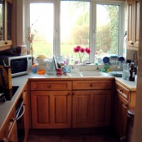 For the food area, as a rule, the most comfortable part of the room is selected. In the kitchenette, it can be a wide angle where the whole family can fit. It is easiest to make furniture, namely a table and benches or chairs, with your own hands, since the dimensions of the kitchen do not always allow you to buy mass-produced goods. Under the benches very often there are retractable baskets for the kitchen, in which you can place all the items that do not have a primary need. On the thematic portals, you can find different ideas with photos on how to best design and do it yourself.