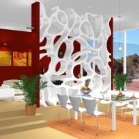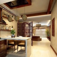 Between the kitchen and the living room, decorative partitions are more popular, being stationary type and mobile.