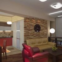 Important! If you put the sofa in the living room with the back to the kitchen, you get another popular zoning option.