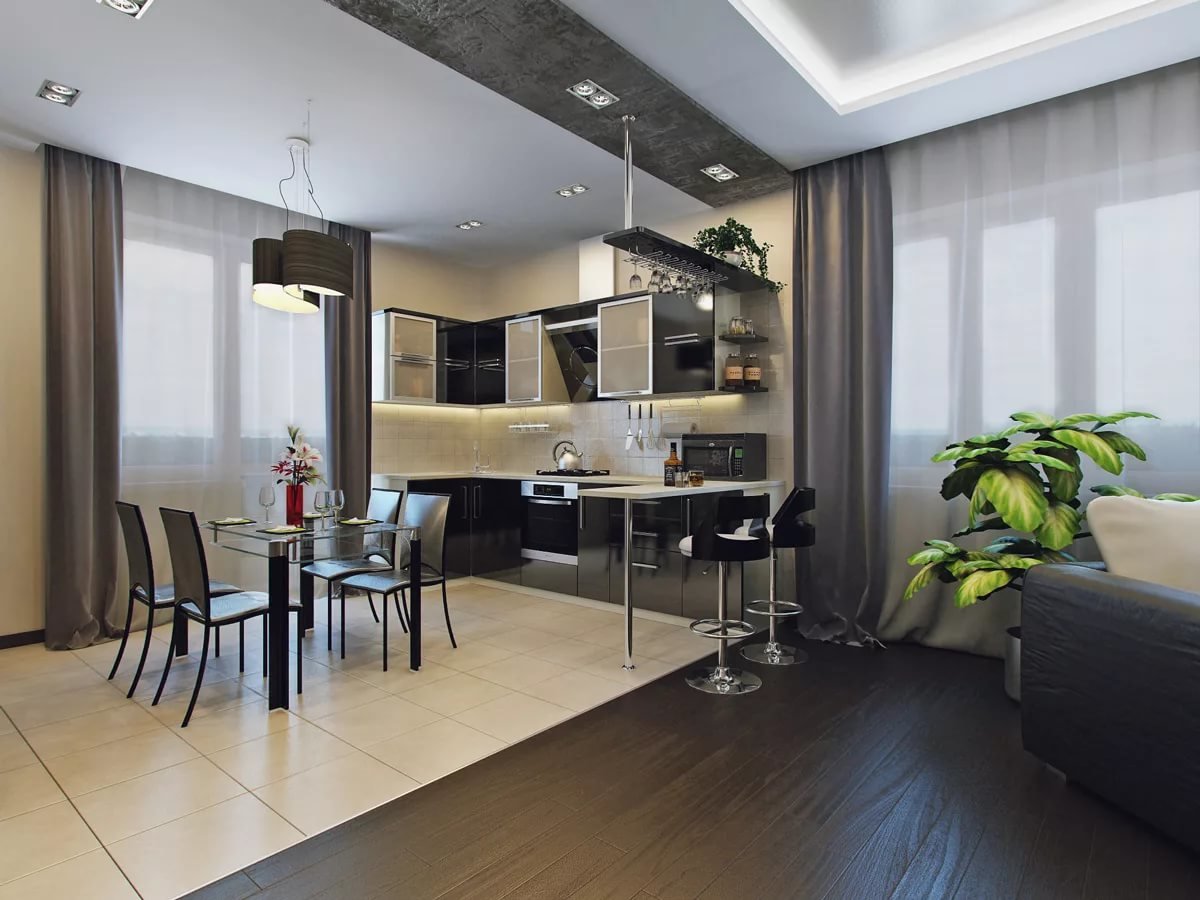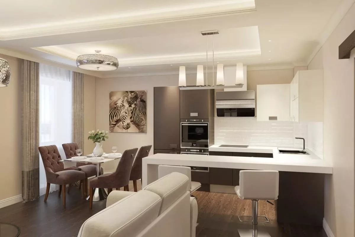 - 9 50 photo ideas for combining a kitchen with a living room