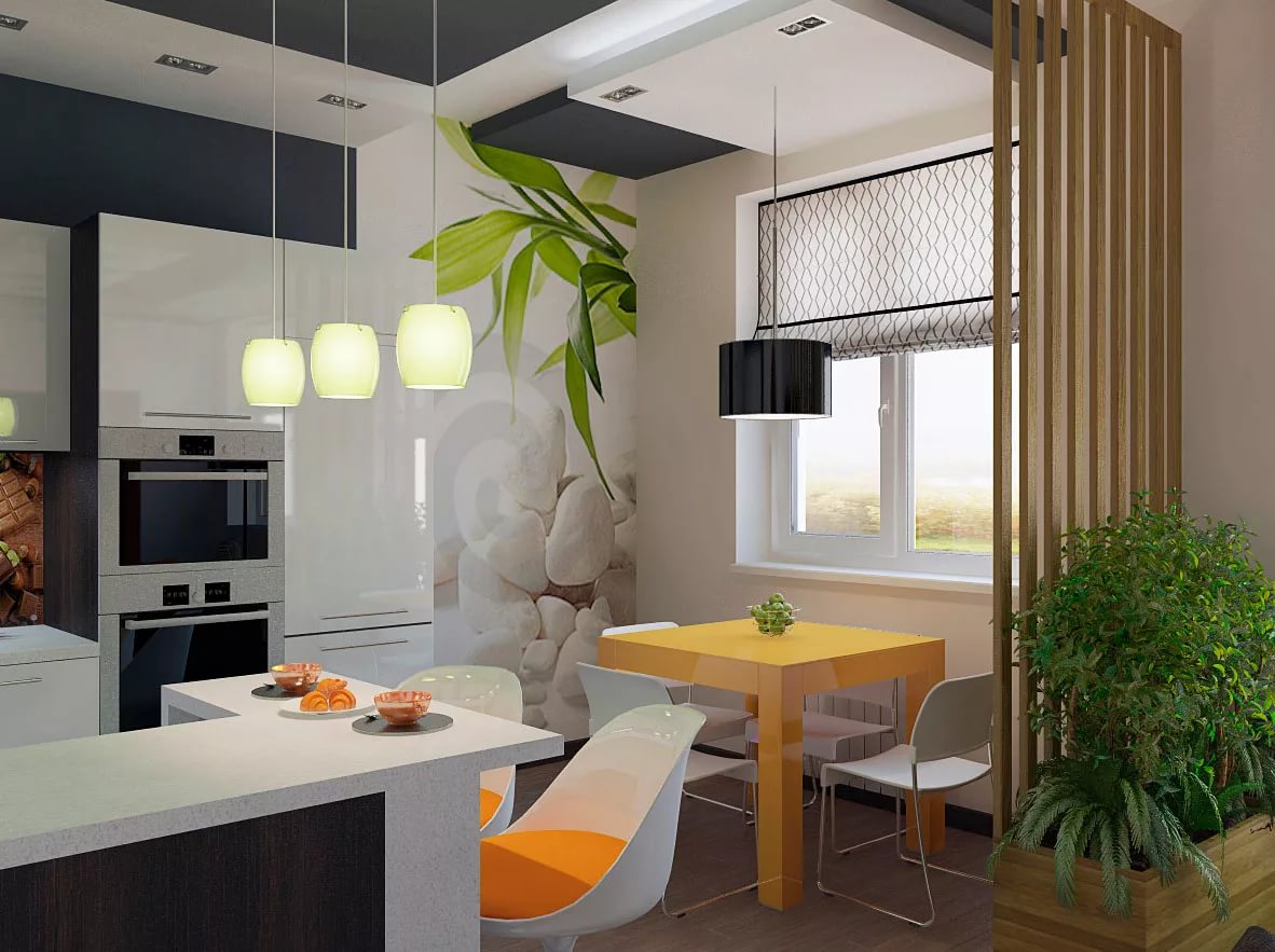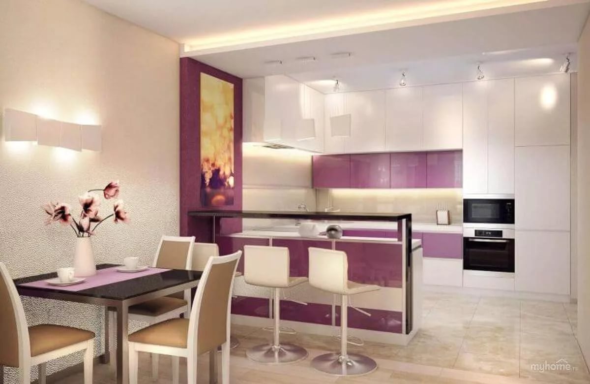 In modern kitchens, the island is often used, and the room can be separated by a bar.