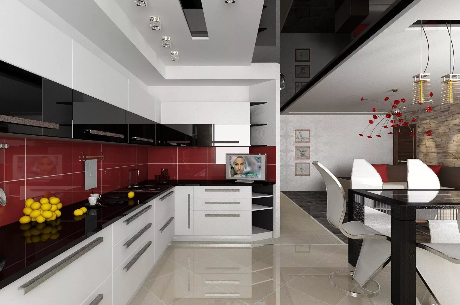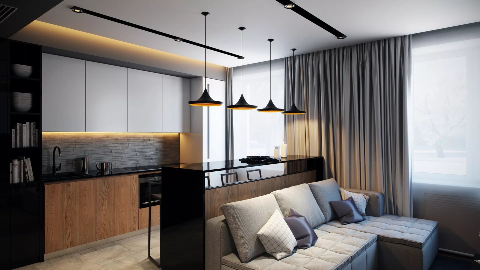 Interesting zoning options for the kitchen and living room