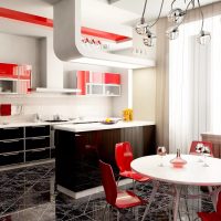 Important! The podium looks advantageous in any interior style, but it slightly reduces the kitchen area due to its own design.