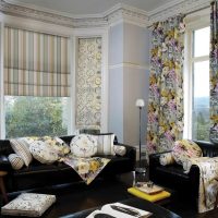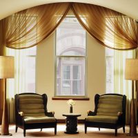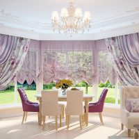 The design of the window should correspond to the general interior of the room, so it is recommended to select the curtains when the repair project is ready.