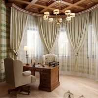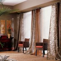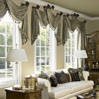 One of the most popular window decoration options used in rooms of any purpose. These are long dense canvases that go down to the floor. Variations are possible: curtains, consisting of one or two paintings. The variation in the color scheme of the curtains is quite wide. This is an option that looks great in dark colors. The range of materials from which they can be made is diverse. Both artificial materials and natural fabrics are suitable.