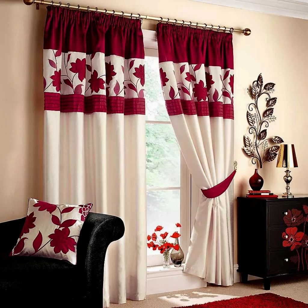 Red-violet curtains can be used as an addition to decor elements, or act as an independent unit, attracting attention, and creating a bright accent in the room.