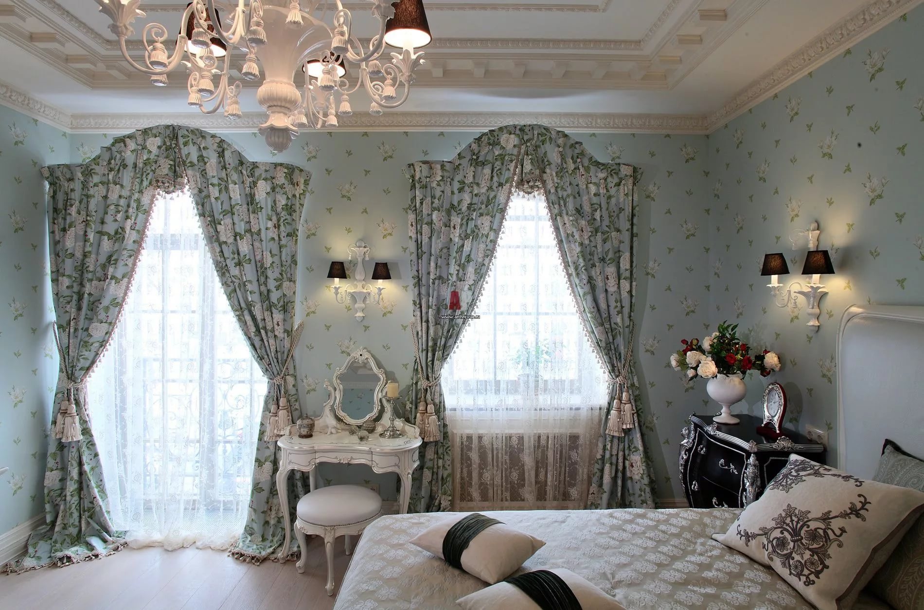Light tones are preferred. French curtains are more often made of linen, silk, satin, muslin, tulle. It is important to use such a solution only in spacious rooms of a large area. Volumetric elements visually reduce the room.