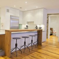 Finishing begins with flooring. Planed boards for parquet treated with colorless varnish will look good. The latter must be applied in several layers to protect the wood from dirt and moisture. Suitable birch or ash. It is important to make the floor white tone.