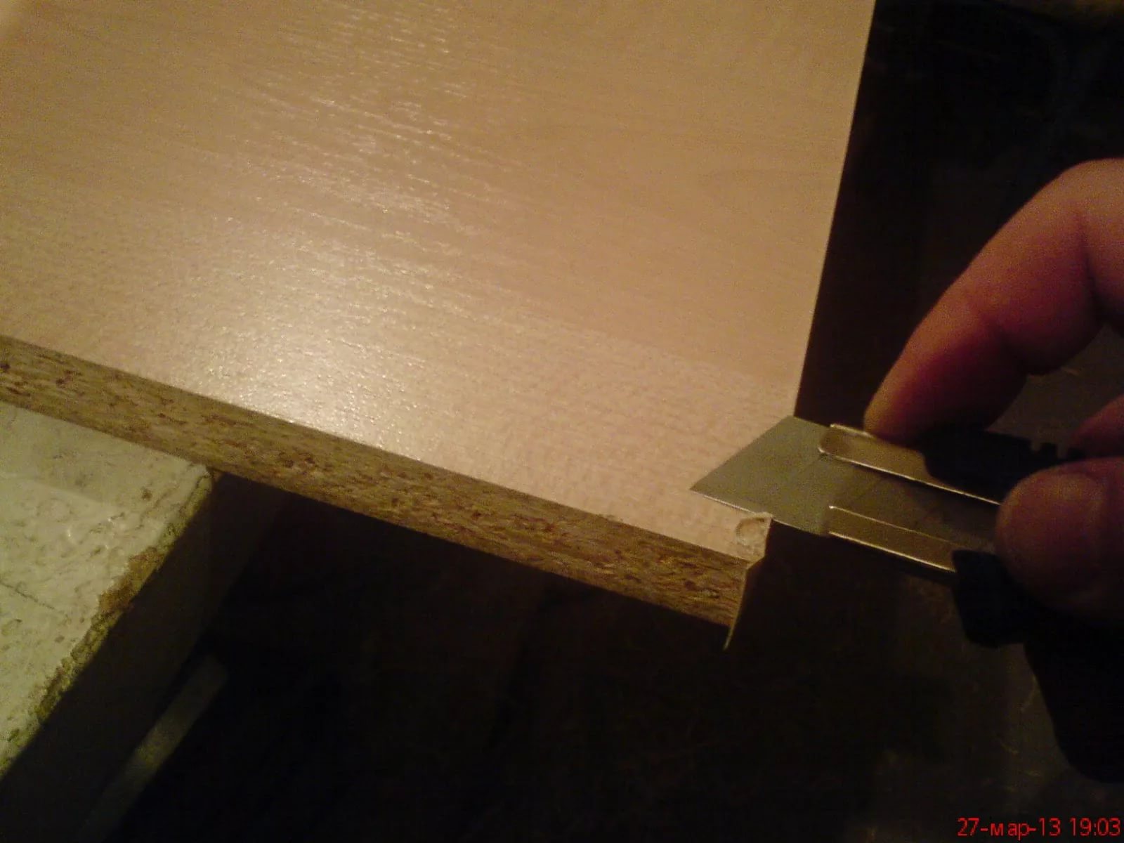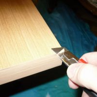 - If ABS plastic was chosen as the material for edging, it will be difficult to cut such a material. So that irregularities do not spoil the appearance, you can carefully remove them with the help of an extra pressure.