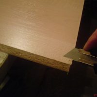 1. The edge may have glue on the inner surface, and may be sold without it. The list of necessary tools and materials and the progress of work will depend on this. If there is already an adhesive layer, then using an iron in a low-temperature mode (this mode may also be called “synthetics”) or a building hair dryer and a hard roller, we impose an edge on the end face, which was previously cleaned of dust and small crumbs. Be sure to ensure that the entire surface of the slice is covered with an edge.