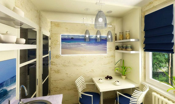 In general, folding furniture is a real find for such tiny kitchens; a table can be folding, folding or sliding. A folding table is best found with an upper drawer and side shelves for storing useful little things.