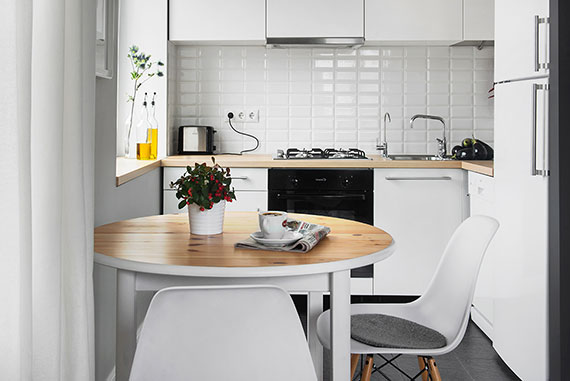 For a dining group, buy a transforming table that can be easily folded and disassembled, so it will not interfere with creative work on culinary masterpieces, and the whole family can gather at dinner.