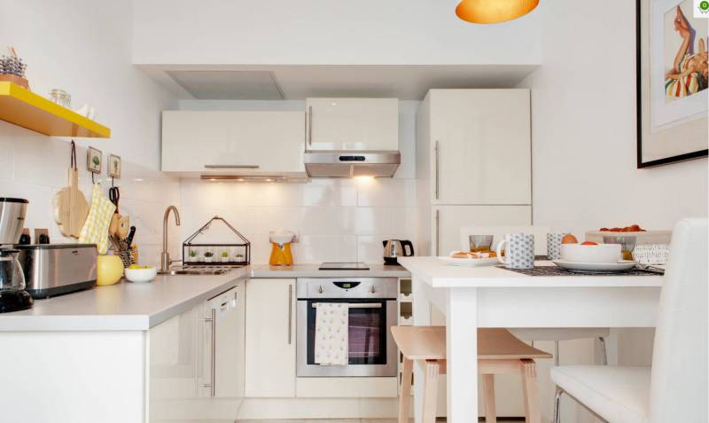 The dimensions of such a kitchen require simplicity and dictate a minimalist atmosphere.