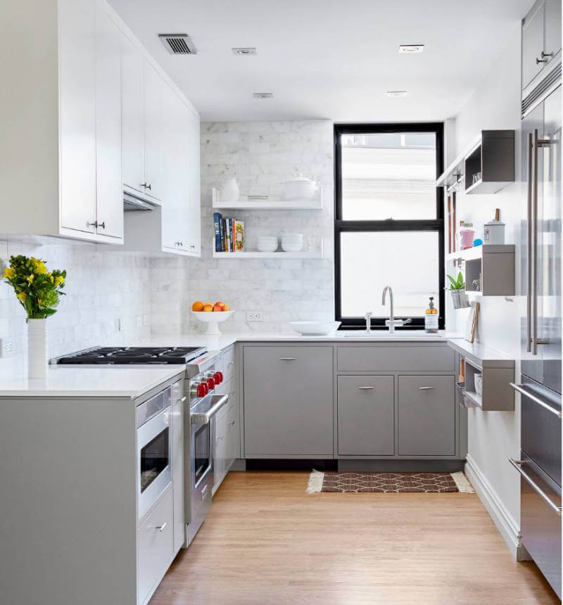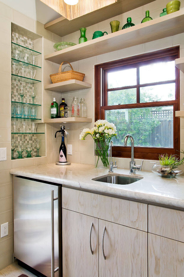 - Give preference to open wall shelves. They will not overload the kitchen.