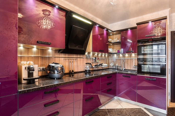 - Choose cabinets and cabinets not with swinging, but with lifting or sliding doors, preferably glossy or glass.