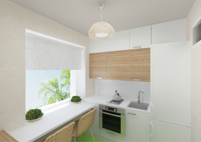 Proper arrangement of furniture is the only way to create a convenient and practical kitchen interior of 5 sq m.